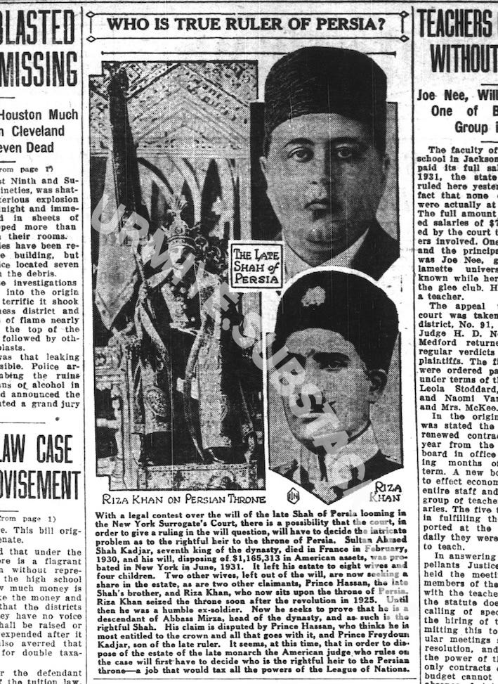 What turned a routine inheritance case into something far more significant was the political question it raised. Reza Khan, who had taken the throne in 1925, was drawn into the proceedings. According to The Oregon Statesman, the court had suggested it might first have to decide “who the true heir to the throne was,” perhaps to determine which government’s laws should apply, in order to rule on the will itself.